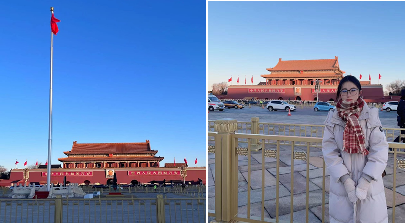 1月22日,九江学院学生校长助理、药学与生命科学学院A2151班张佳怡去北京进行实地参观学习。她观看了天安门前的升旗仪式,到了天安门广场、人民英雄纪念碑和中国人民抗日战争纪念馆实地参观学习,深入了解了中国革命的历史和英雄人物的事迹,增强了爱国主义情怀和社会责任感。她表示,尽管时间有限,但会永远记得在冬季的北京凌晨就排队的人群画面以及天安门看升国旗时的民族自豪感,青年学生应该坚定理想信念,将爱国情怀和社会责任感融入到自己的生活和学习中,为实现中国梦注入青春能量。