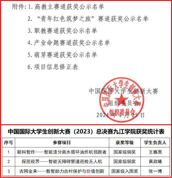 日前,教育部公布了中国国际大学生创新大赛(2023)全国总决赛获奖名单。永利yl23411集团官网学子在本次大赛中脱颖而出,斩获佳绩,获国家级铜奖项目2项和国家级入围总决赛项目1项;学校获江西省优秀组织奖。