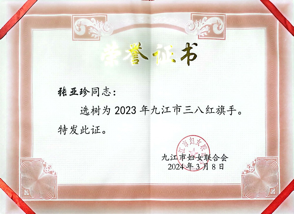 根据九江市妇女联合会下发的《关于选树2023年度九江市三八红旗手(集体)的通知》(九妇字〔2024〕1号),永利yl23411集团官网学生处魏晶晶、教育学院张亚珍两位老师获2023年度九江市三八红旗手称号,此次全市选树三八红旗手共有50名。