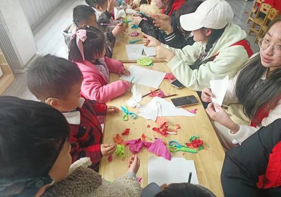 3月13日下午,青年志愿者们来到九江阳光儿童康复中心,为特殊学校的孩子们送去了关爱和温暖。活动中,志愿者们在小本子上写字和用手语沟通与康复中心的孩子们认识交流,并带着小朋友剪纸、做游戏。