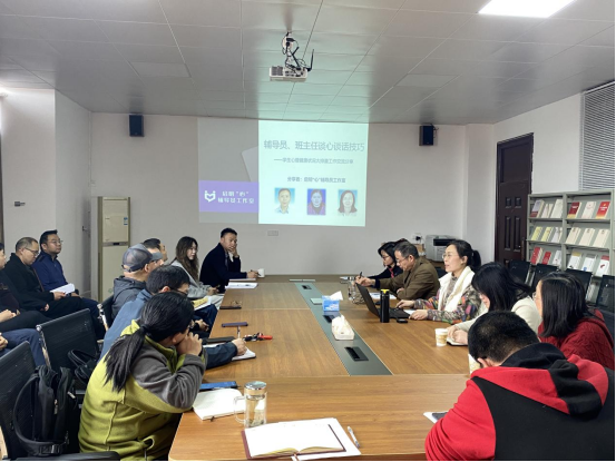 工作室负责人吴燕老师从“我是谁?”、“我要做什么?”、“他(她)是谁?”“我和他(她)的谈话小技巧”四个方面,结合近期学校心理健康排查工作,为大家讲解了班主任、辅导员如何找准自己的工作角色定位、学生心理辅导的主要工作任务、如何科学认识和理解学生的心理问题,并且分享了与学生谈心谈话中如何巧妙运用倾听、共情等心理辅导技术,帮助辅导员、班主任提升了心理辅导的工作技能。工作室成员周海霞、胥杜鹃两位老师也结合自身工作经验与参会的老师们进行了探讨交流。