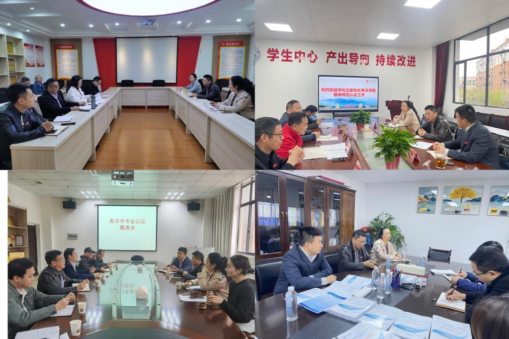 李松志一行先后来到四个认证学院,听取了认证专业关于师资力量、课程设置和考核、教学条件和教育教学设施、学生管理和日常教育、师范生实践教学、毕业论文和实习报告等准备情况的汇报。