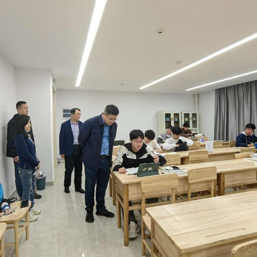 在二级学院辅导员值班室,雷志强详细查阅值班记录表和学生工作相关资料,与值班老师亲切交谈,详细了解值班值守相关制度执行、值班老师工作和生活保障等情况。他强调,要落实好学校值班要求,坚持守在学生工作第一线,熟悉学生宿舍应急处置流程,及时稳妥应对任何可能发生的突发事件,切实保障学生的生命财产安全,维护好学校和谐的良好局面。