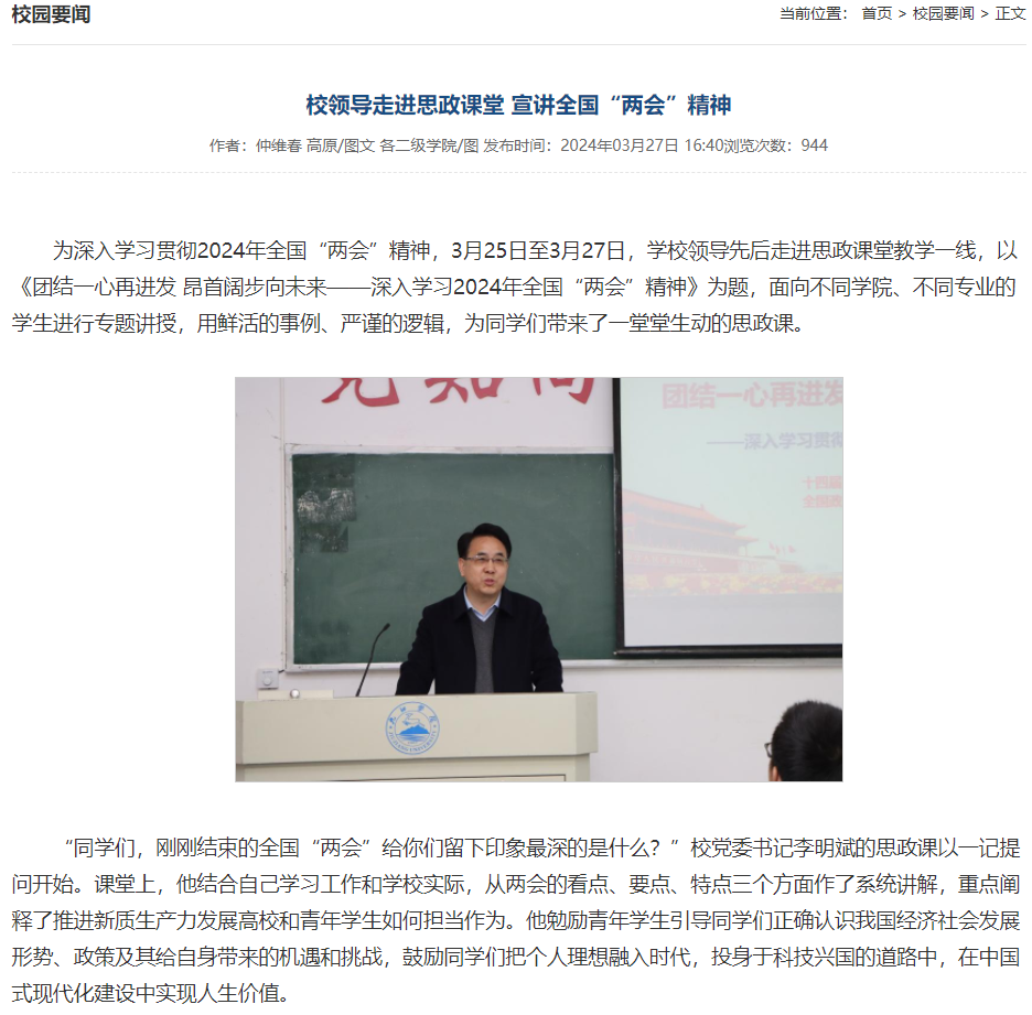 今年是强化巡视整改工作、实现“十四五”规划目标任务的关键一年,也是学校迎接本科教育教学审核评估推动高质量发展的跨越之年。学校坚持以习近平新时代中国特色社会主义思想为指导,全面贯彻党的二十大和二十届二中全会精神,深入学习贯彻习近平总书记关于教育的重要论述和考察江西重要讲话精神,落实立德树人根本任务,加快推进高质量内涵式发展;积极开展“大抓落实年”活动,全面提升学校核心竞争力、服务高质量发展能力、内部治理效能和干部教师精气神,加快建设特色鲜明高水平应用型大学。