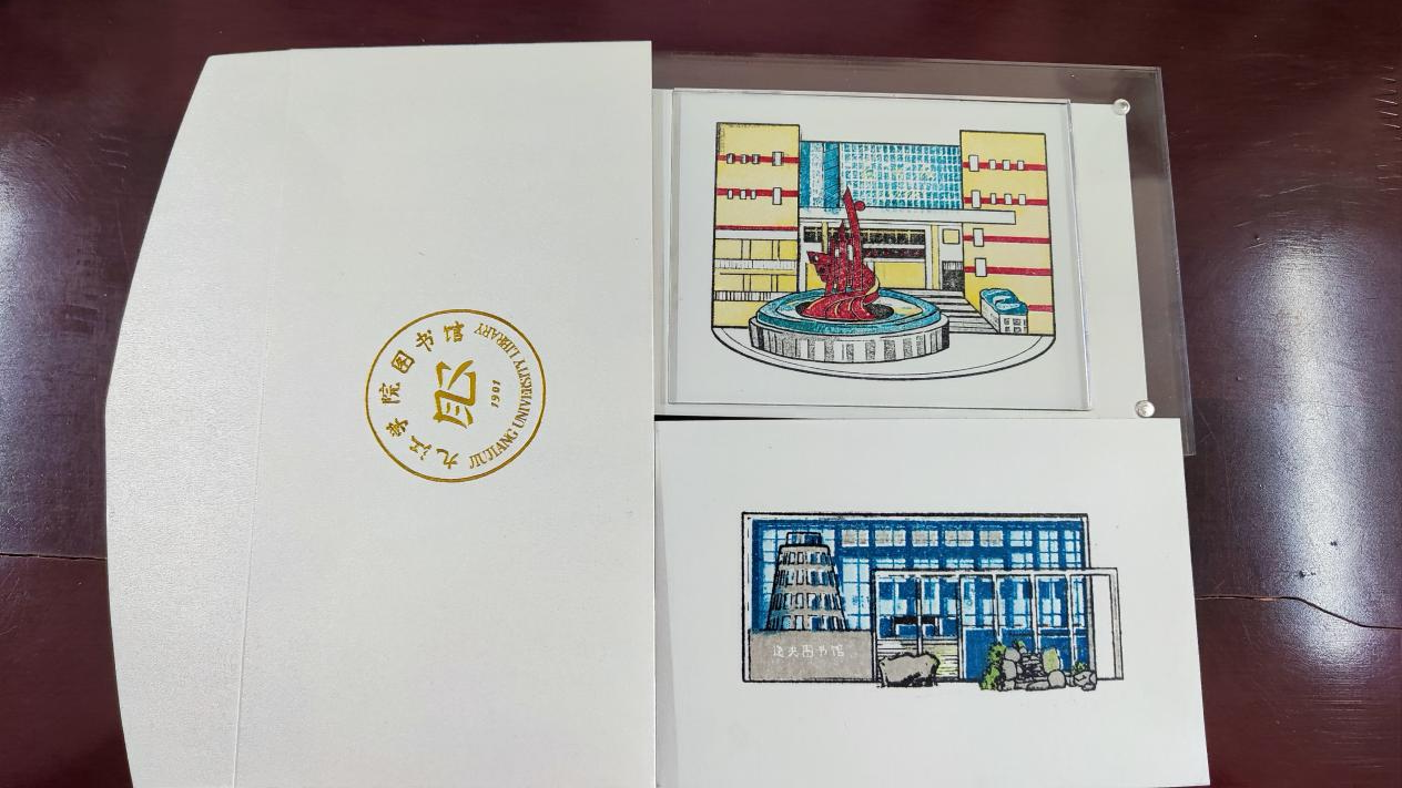 “这次阅读活动的小礼品也很用心,用印章刻印丹枫馆和逸夫图书馆,体验感十足,让大家把图书馆的美好记忆留在心底。”谢丽莹同学十分喜欢这个特别的奖品。图书馆还邀请欧阳沁同学设计了丹枫馆和逸夫馆的手绘图,再定制出多色套印章。同学们将印章盖在白纸上,装在定制的信封里,仪式感满满。