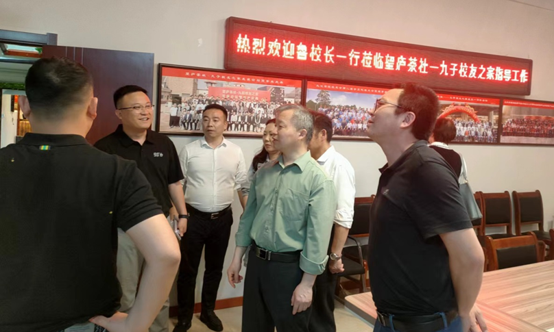 鲁卫东一行还来到“九子”校友之家——望庐茶社看望建工学院的校友。望庐茶社是由建工学院校友组建的一个非营利性组织,是一个为九江学院即将毕业、已经毕业的各界校友提供创业、就业咨询和工作、生活交流,以及外地校友回浔省亲团聚的平台,全天候为各界校友提供免费服务。