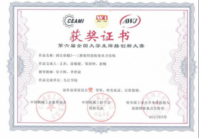 加强与企业之间的横向合作,与江西新明峰包装科技有限公司、华林特钢集团有限公司、九江新联传动机械有限公司、江西德瑞光电技术有限责任公司、江西赛瓷材料有限公司、九江嘉远科技有限公司等企业开展横向课题研究;积极推动企业揭榜挂帅工作,先后参与江西中船航海仪器有限公司的“新一代医疗救治系统的轻量化放舱研制”、九江中科星鑫新材料有限公司“基于国产UHMWPE树脂的高性能锂电池隔膜湿法加工技术”、同方江新造船有限公司“激光&激光-MIG复合焊在船高强度有色金属焊接中的应用技术开发”等项目的揭榜。积极推进产教融合,与柴桑区人民政府、华林特钢集团有限公司、同方江新造船有限公司、九江新联传动机械有限公司、九江辉瑞机械有限公司、中船九江锅炉有限公司联合建立冶金与材料工程现代产业学院。