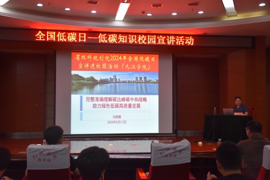 5月17日,由九江学院、九江市生态环境局、九江市濂溪区生态环境局共同主办的低碳知识校园宣讲暨资源环境学院第六期“两山”思政讲堂活动在九江学院逸夫图书馆报告厅举行,活动邀请了江西省生态环境科学研究与规划院的专家冯明雷授课。资环学院负责人、九江市生态环境局、九江市濂溪区生态环境局、资环学院师生代表共120余人参加此次活动。