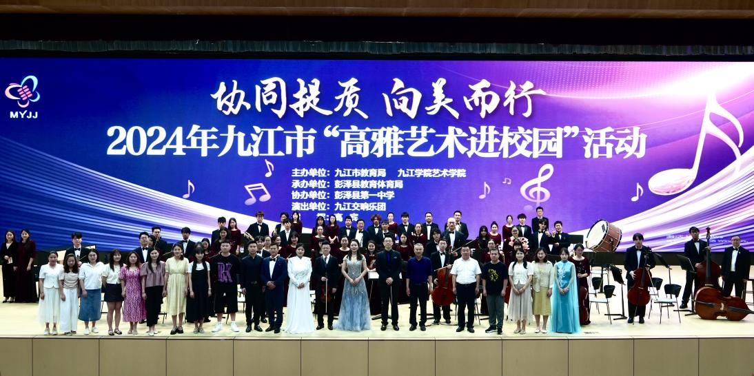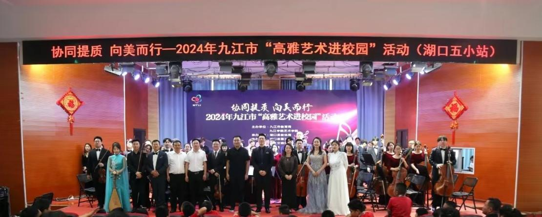 5月23日至5月25日,由九江学院艺术学院与九江市教育局共同主办的“协同提质、向美而行”2024年九江市高雅艺术进校园活动巡演音乐会举行。本次巡演由瑞昌市教育局、九江市第一中学、九江市第三中学、湖口县教育局、彭泽县教育局共同承办。由永利yl23411集团官网艺术学院师生组建而成的九江交响乐团分别前往九江市各县区6所中小学进行了为期三天六场的巡演。
