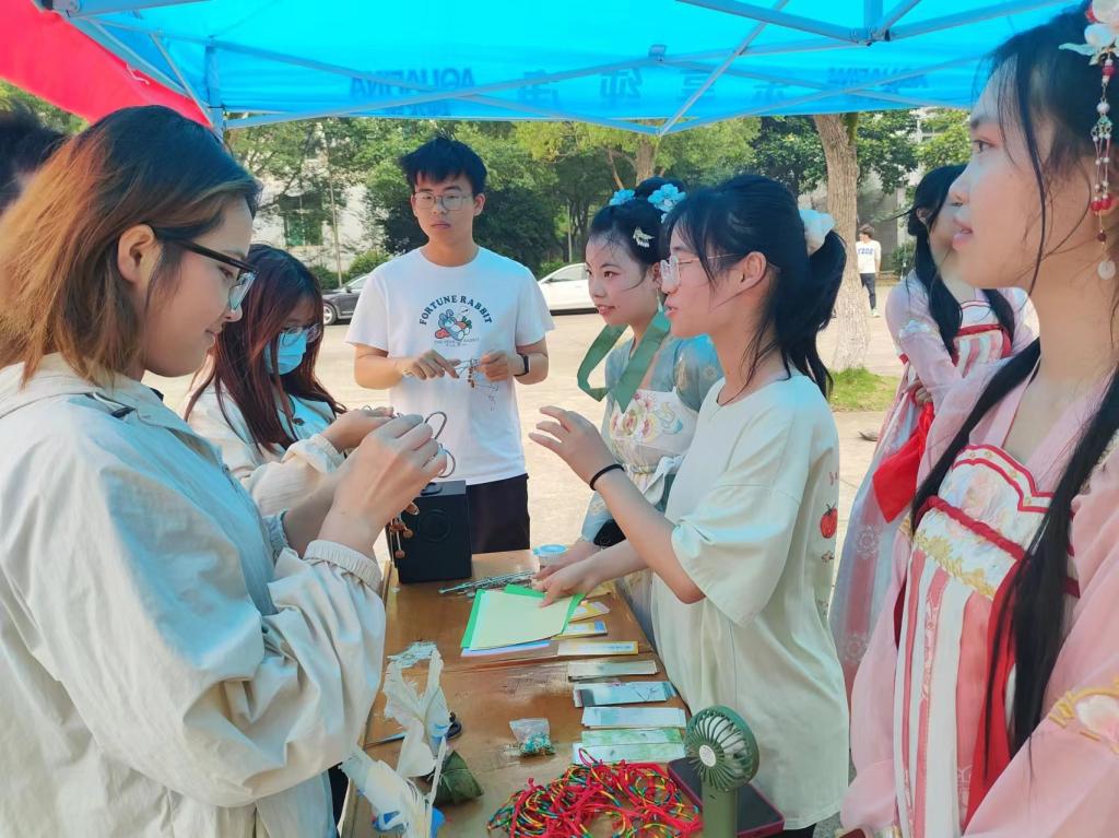 美术协会同学们深入探索端午节的文化内涵,充分利用自身的专业知识和创意,以端午节的传统习俗和元素为灵感,手绘创作出了一系列丰富多彩的美术作品,并制作成精美的钥匙扣和明信片赠送给前来参与活动的同学们。
