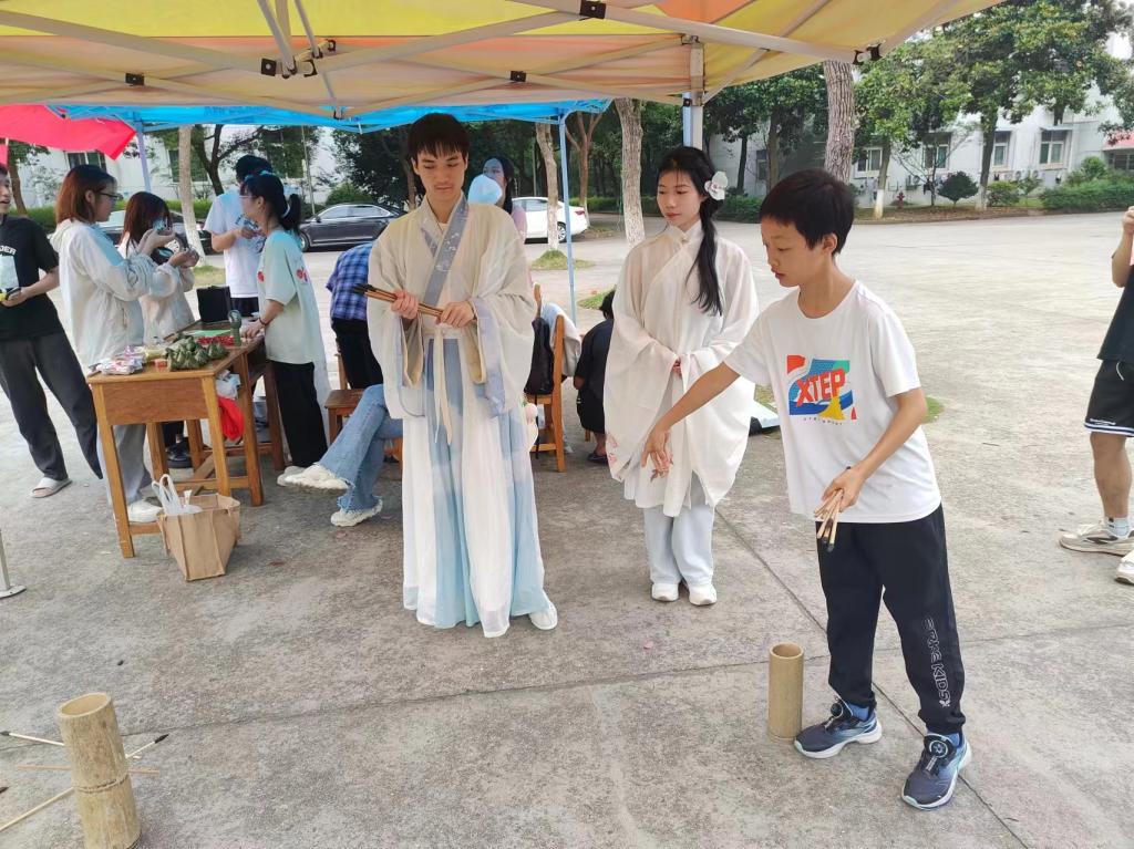 香囊DIY和包粽子比赛更是将活动推向了高潮。南山国学社同学们亲手制作了各式各样的香囊和粽子,不仅锻炼了动手能力,还增进了对传统节日文化的了解。大家一边制作,一边交流着端午节的习俗和故事,现场气氛温馨而热烈。