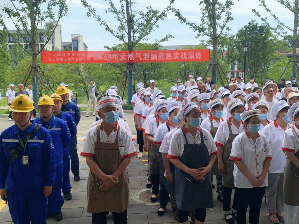 本次实战演练邀请深燃公司现场指导,模拟食堂内发生意外,造成燃气泄漏。后勤管理处接到食堂工作人员关于燃气泄漏的汇报后立即启动应急预案,疏散人员车辆、设置警戒线和警示牌,同时向九江深燃天然气有限公司报警。深燃公司经过接警出发、人员疏散、泄漏处置、停止供气、关闭设备等一系列救灾抢险操作,20分钟的协同作战后,险情成功被处置,演练取得圆满成功。演练后还进行了燃气安全使用培训,重点强调了安全操作方法,教育大家在使用燃气过程中要坚决克服麻痹思想、侥幸心理,规范用气,确保安全生产。