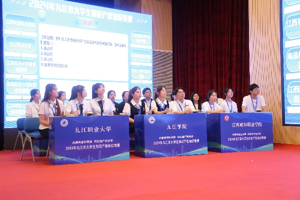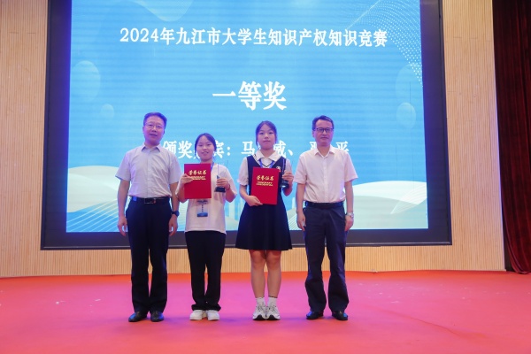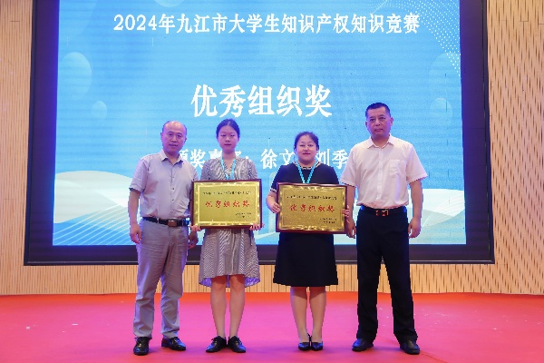 6月16日,由九江市市场监管局、九江市科协、共青城市人民政府联合主办的2024年九江市大学生知识产权竞赛在江西财经大学现代经济管理学院成功举办。副市长马海威、副校长严平等出席活动。经过激烈角逐,九江学院代表队荣获一等奖,九江学院荣获优秀组织奖,王菠老师荣获优秀指导教师奖。