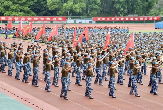 “齐步!走!”“一二一,一二一……”一排排整齐划一的队列在训练场上展开,在炎炎烈日之下,尽管汗水不停挥洒,新生们依旧斗志昂扬,步伐矫健,动作标准,声音洪亮。