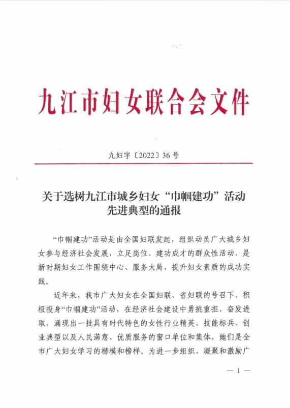 舞蹈教研室获九江市第十三届“巾帼文明岗”称号