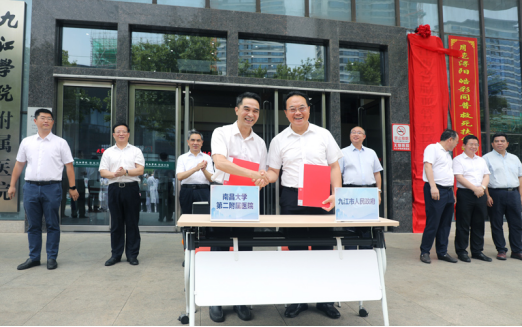 市政府与南大二附院合作共建脑血管病区域医疗中心在九江学院附属医院顺利签约并成功揭牌。以江西省脑血管病区域医疗中心建设为抓手,对外交流“朋友圈”不断扩大,承办九江2023年“8·19中国医师节文艺晚会”、2023年九江市医院管理与高质量发展论坛、2023 年九江市深化医改和公立医院高质量发展研讨会。