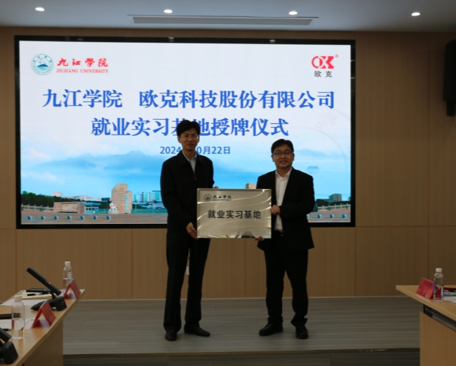 在热烈的掌声中,座谈会上还举行了“九江学院就业实习基地”授牌仪式。