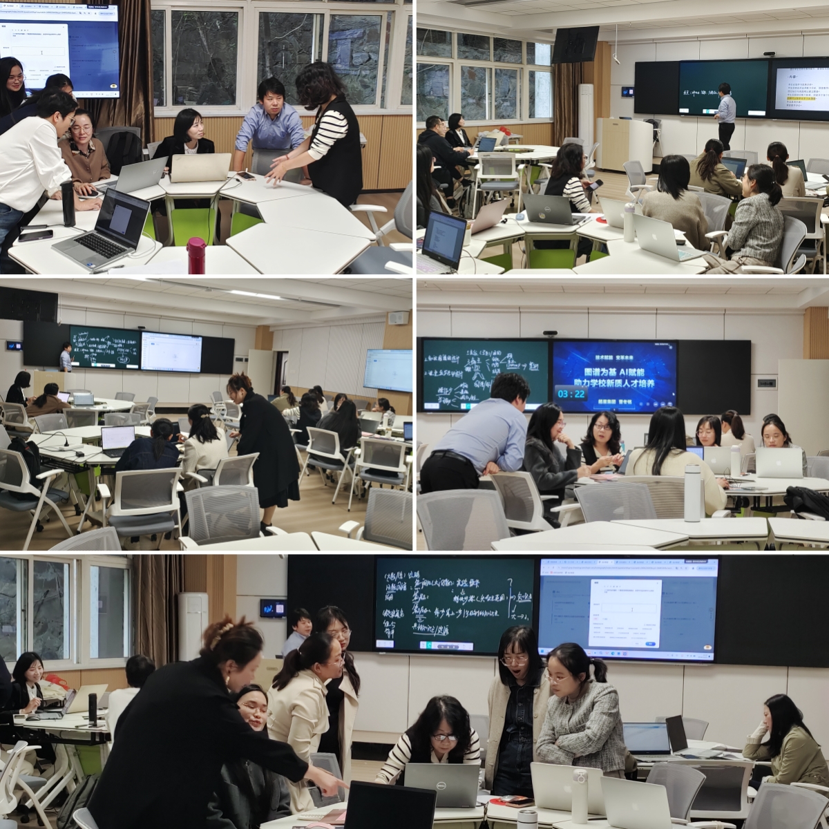 本次工作坊以“图谱为基 AI赋能—助力学校新质人才培养”为主题,采取“理论引领+实操演练”的双重模式。曹冬铭首先从知识图谱的设计和课堂教学活动创新两个方面进行理论讲解,并以国内其他高校知识图谱创新课程建设,助力教育教学发展为例,重点讲解了知识图谱创建过程以及其在教学实践中的应用。在实操演练阶段,各教师在培训教师的协同指导下掌握了课程知识图谱的整体设计、知识点提取、知识点关系梳理、知识点样例设计及内容补充、问题图谱设计、问题关联知识点等各个建设环节,并就在课程知识图谱创建过程中的疑问及技术难题进行了讨论与交流。