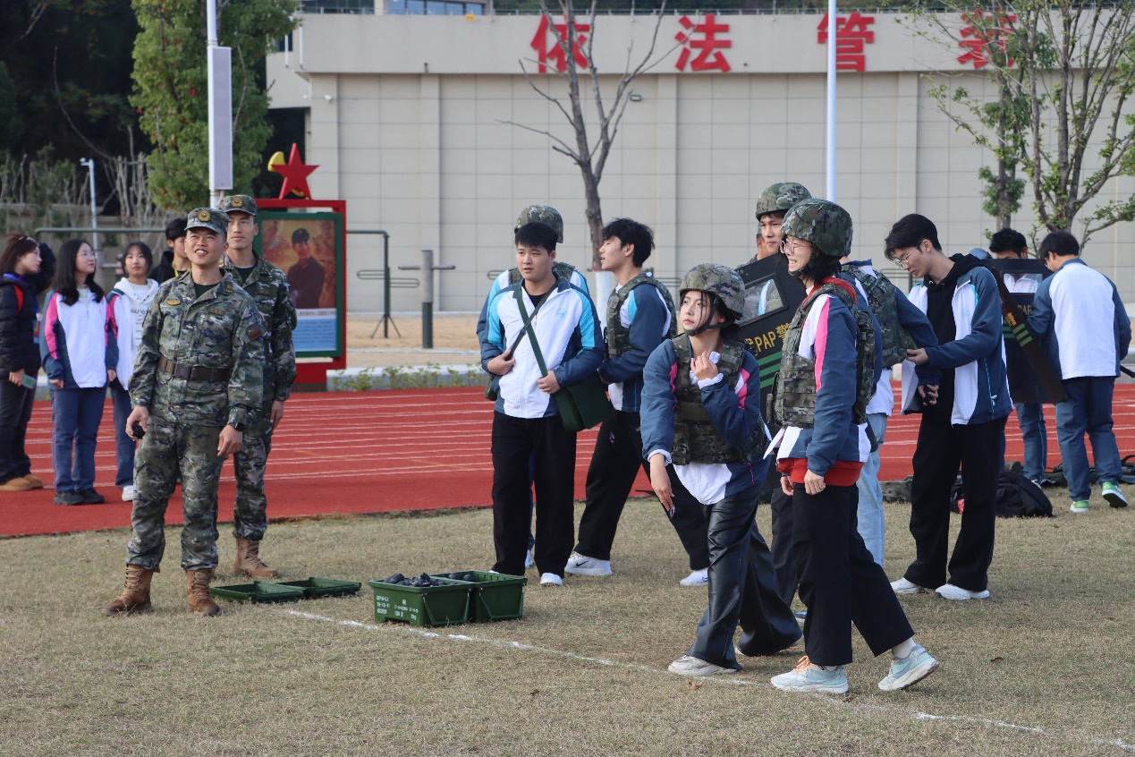 武器装备展示区域更是成为了学生们关注的焦点。各式各样的武器装备整齐排列,让学生们大开眼界。在武警官兵的细致演示和耐心指导下,学生们纷纷尝试体验各种武器装备,端枪、瞄准、上膛……材料学院A2312班钟淑婷同学兴奋地说:“这些只在荧幕上见过的武器如今就摆在眼前,非常荣幸能够近距离接触到武器装备沉甸甸的重量和坚实的质感。”