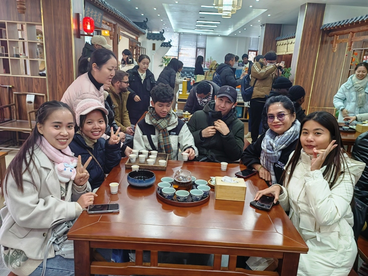 12月13日,九江学院来自柬埔寨、加纳、纳米比亚、巴基斯坦、博茨瓦纳、坦桑尼亚、索马里、埃塞俄比亚、尼日利亚、叙利亚、伊朗、阿富汗等12个国家的20名2024级临床医学和中文教育的留学生代表,走进九江职业大学天工制作坊和万里茶道茶学院,参与了一场以“感受非遗魅力、体验手工乐趣”为主题的活动。