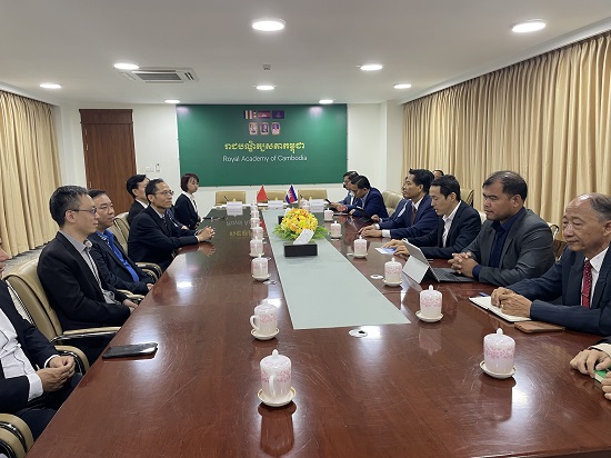在王家研究院,王殿元回顾了两校合作交往历史,并同王家研究院院长宋独(Sok Touch)就王家研究院孔子学院的建设和发展、合作办学、中文+职业、设立柬中经贸合作研究中心等议题展开了深入的讨论。