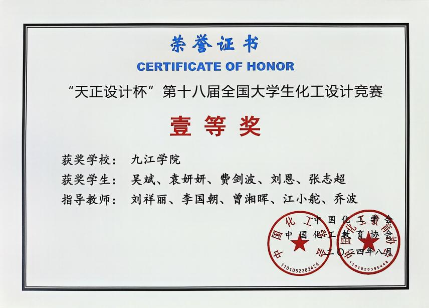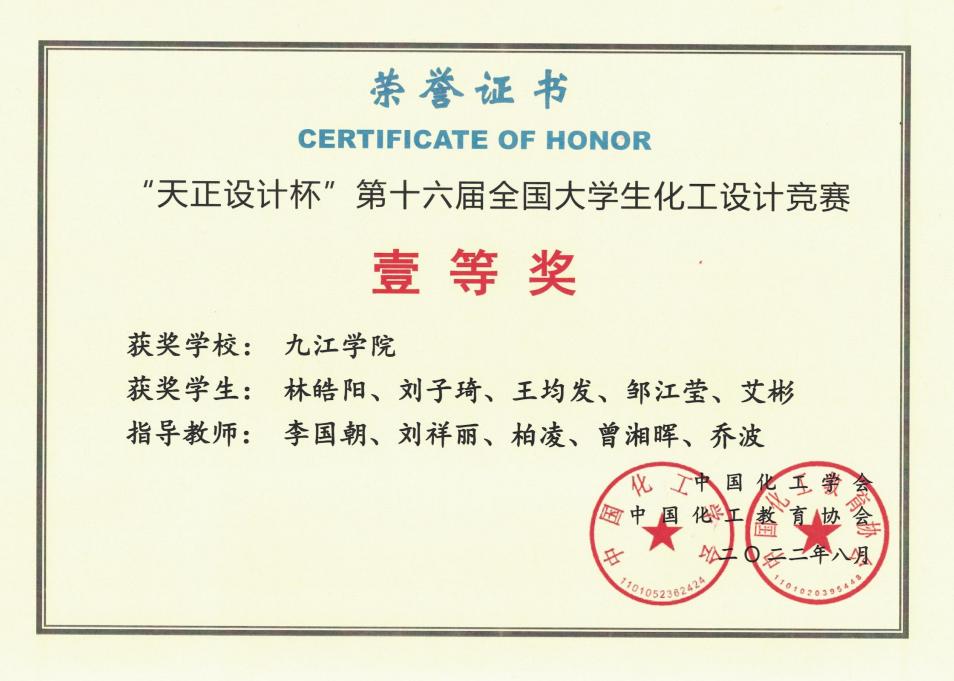 在第十六、十七、十八届全国大学生化工设计竞赛中获一等奖