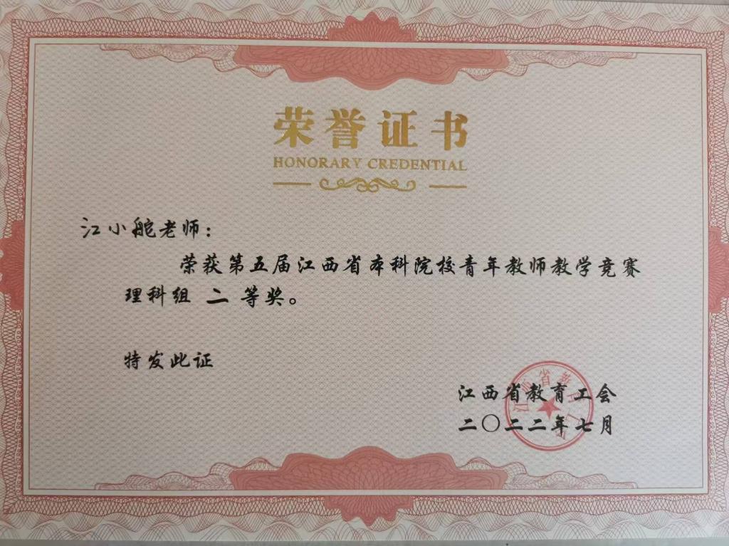 江小舵老师获第五届江西省青年教师教学竞赛二等奖