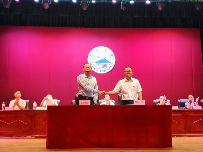 学院持续开展校政企合作,与九江天赐、晨光新材、善水科技、海多硅材等企业签订横向课题58项,到账经费2000余万元。深入开展毕业生实习实践,同时开设“天赐订单班”,“海多硅材”奖助学金、“贝特利”奖助学金、“善水科技”奖助学金等。胡华南、潘家炎、占昌朝、杨文四位博士分别在2022年、2023年、2024年九江市重大技术攻关“揭榜挂帅”中成功揭榜。