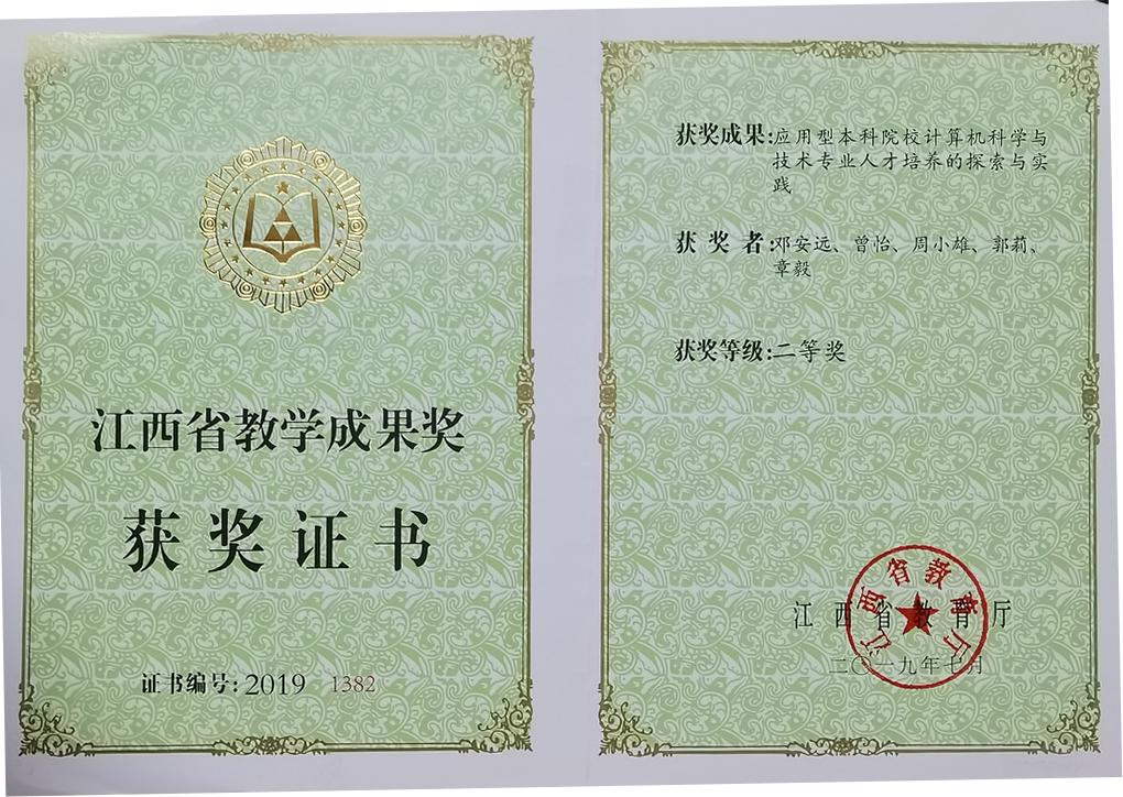 学院突出教学工作中心地位,精准把握行业跳动脉搏,不断深化教学内容和课程体系改革,强化教学质量监控,注重大思政课建设,促进教学科研相长。计算机科学与技术专业入选江西省一流本科专业建设点。获江西省高水平本科教学团队1个、江西省教学成果奖二等奖2项、省级课程8门、教育部产学研协同育人项目46项、大学生创新项目30余项(其中国家级6项),国家级大学生创新创业训练项目1项,获校级课程思政示范课程4门、校级校企合作课程4门、校级校企(行)合作教学团队1个、校级示范性实践教学基地2个,2名教师分别获校教师课堂教学竞赛一等奖、二等奖。
