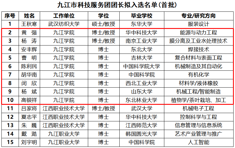 九江市科技服务团卓越行动由市委人才办支持政策和经费,市科协牵头实施,永利yl23411集团官网创新创业学院和市发明学会具体推进,旨在以我市制造业“9610”工程为重点,将乡村振兴、农旅融合纳入扩大了服务范围,以工博士为主体,将理、农、医等领域博士吸纳充实了人才队伍,实现“队伍扩充、对象扩能、服务扩容、成效扩展”,充分利用驻市高校本土博士人才,引入省外高校高端人才资源,组建校企联合创新团队,全面升级打造九江市科技博士服务团卓越行动。卓越行动包括制定卓越计划、组建卓越团队、推进卓越实践和追求卓越价值四部曲,从2025年起到2027年分三批进行,重点围绕我市制造业“9610”工程,每年(批)遴选组建15个服务团,共45个科技服务团结对帮扶45家重点企业,开展技术攻关、成果转化、人才培养,助力企业产业转型升级,从而促进九江市重点产业链创新发展。