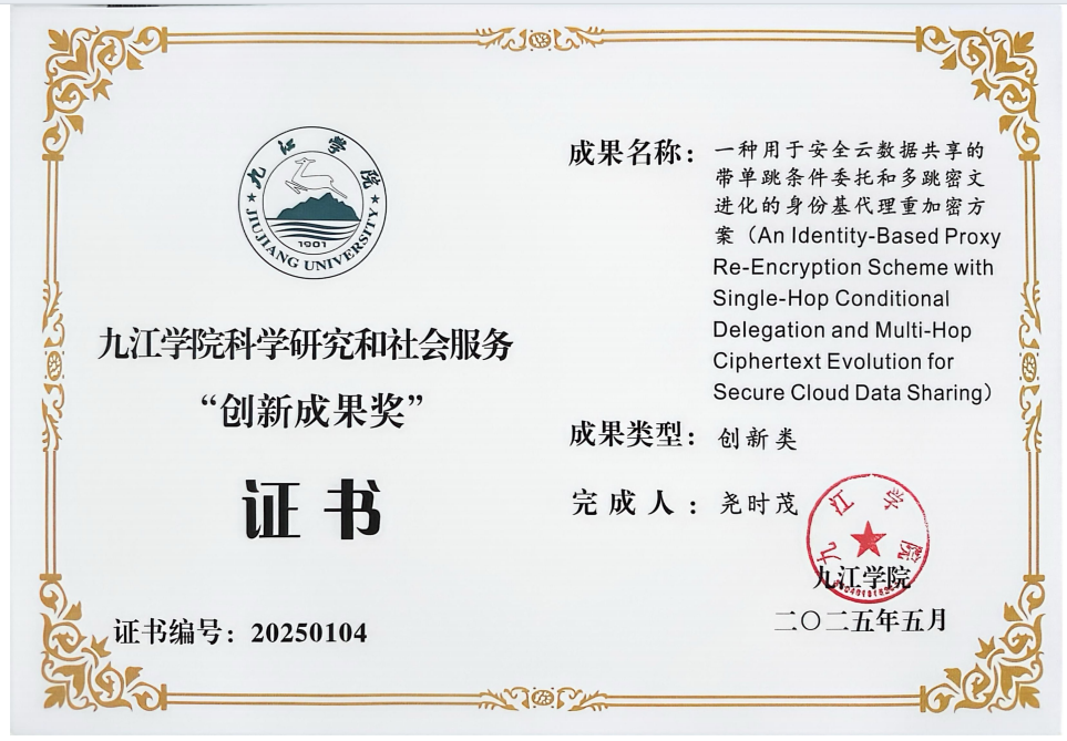 【科研创新成果展】尧时茂:一种用于安全云数据共享的带单跳条件委托和多跳密文进化的身份基代理重加密方案