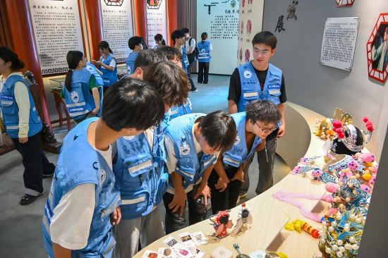 在青阳腔陈列馆内,一件件珍藏的戏服、道具和戏谱静静诉说着这项国家级非物质文化遗产的悠久历史。讲解员详细介绍了青阳腔的起源与发展——明代嘉靖年间,江西弋阳腔传入安徽青阳,与当地声腔、音乐和方言融合,逐渐形成了独具特色的青阳腔。通过珍贵展品与详实讲解,同学们深入了解了这一传统戏曲艺术的演变轨迹。