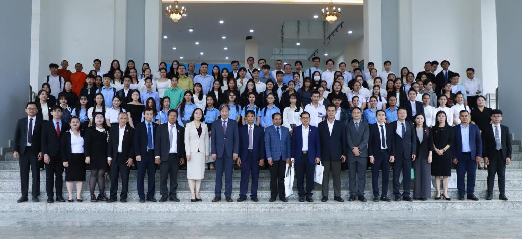 在王家研究院主办的“国际中文教师奖学金柬埔寨校友会”揭牌仪式上,来自教育、文化、企业等领域嘉宾和百余名校友代表出席。郁云峰主任致辞祝贺校友会成立,希望其成为凝聚校友力量、促进职业发展、推动柬埔寨中文教育高质量发展的平台。