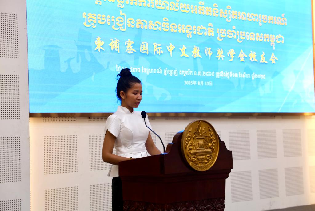 九江学院优秀留学生代表谢美雯在发言中回顾了在九江学院的学习经历,表示将继续致力于中文教育与中柬友好交流。