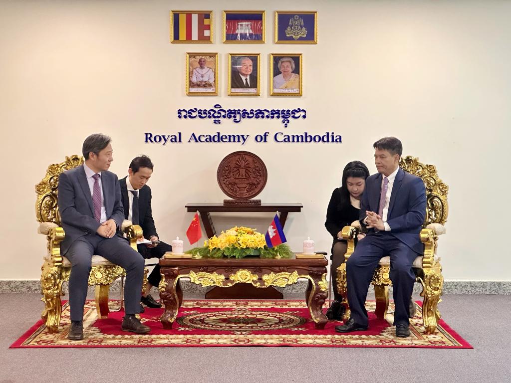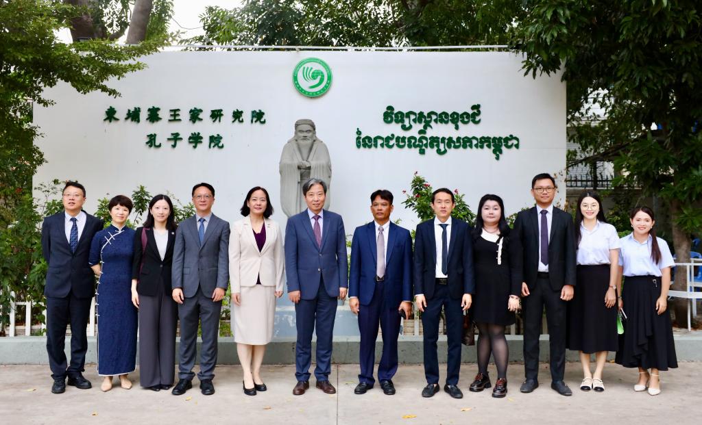 8月13日下午,教育部中外语言交流合作中心党委书记、主任郁云峰教授率团访问柬埔寨王家研究院孔子学院,并与孔院理事长、柬埔寨王家研究院院长宋独院士举行座谈。中国驻柬埔寨大使馆王辉领事出席。