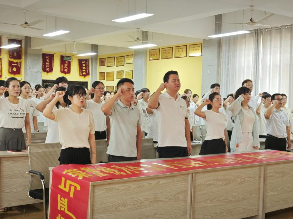 9时整,全体师生集体观看纪念中国人民抗日战争暨世界反法西斯战争胜利80周年大会的现场直播,共忆峥嵘岁月,同瞻胜利荣光。观看结束后,在领誓人的带领下,师生们高举右拳,庄严宣誓,纷纷以铿锵誓言彰显对党的无限忠诚,以及为共产主义事业奋斗终身的坚定决心。