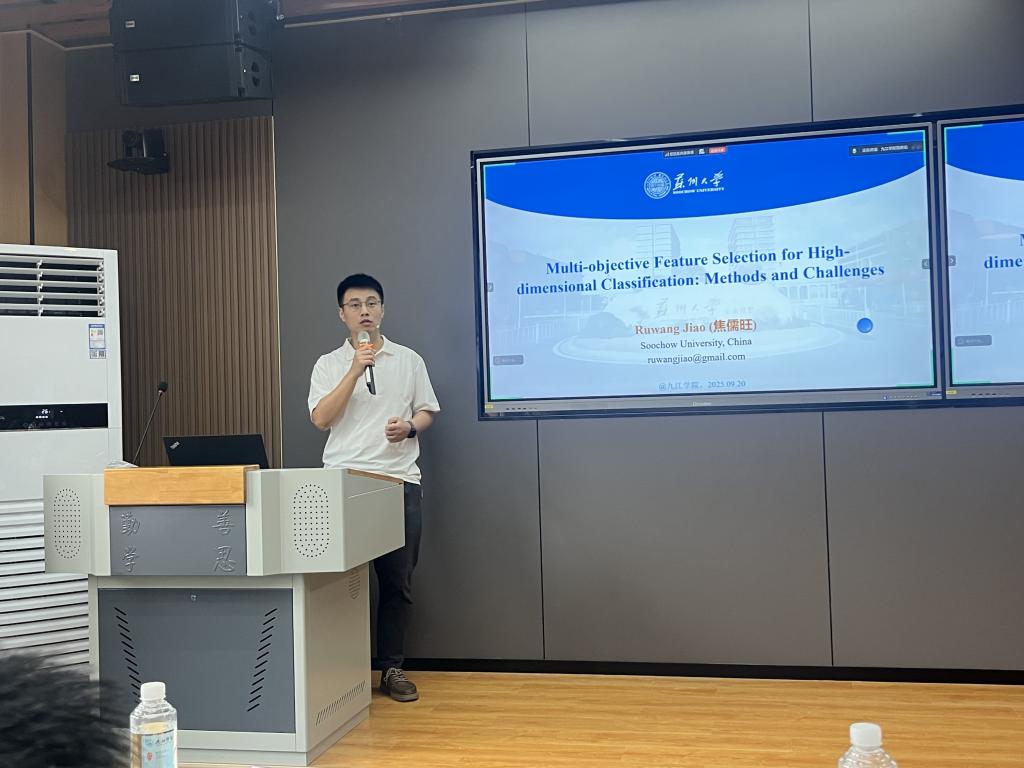 9月20日上午,苏州大学焦儒旺教授应邀访问永利yl23411集团官网计算机与大数据科学学院,并在电子信息实验楼602学术研讨室做了题为《Muti-objective Feature Selection for High-dimensional Classification:Methods and Challenges》的学术报告。报告会由九江市电子学会、江西省计算机学会智能计算专委会和永利yl23411集团官网计算机与大数据科学学院联合主办。