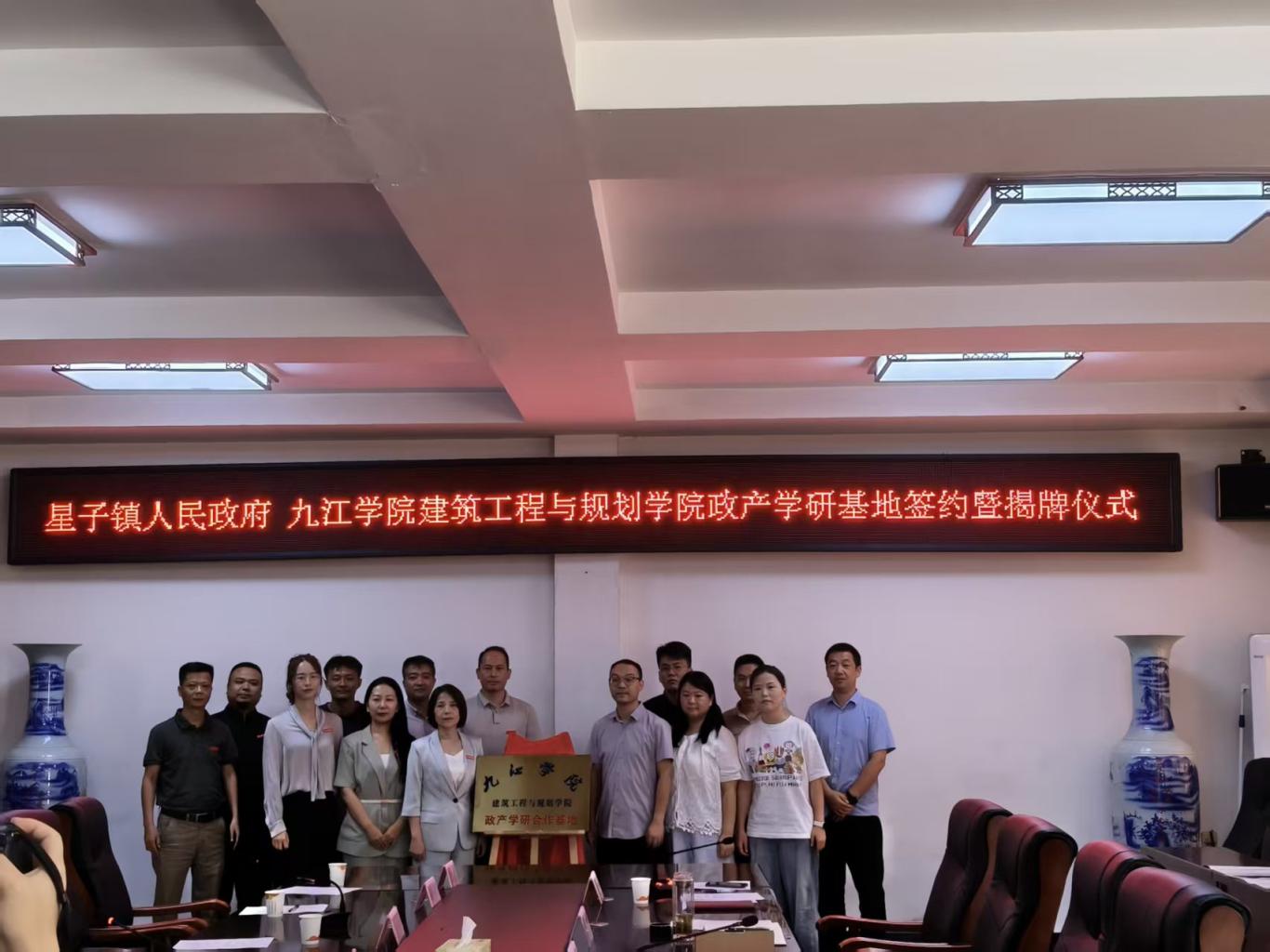 仪式上,双方代表共同签署了《合作协议书》,并为“九江学院建筑工程与规划学院政产学研基地”揭牌。校方表示,学院将积极引导师生融入星子镇发展实践,通过项目实践、课程共建、课题共研等形式,推动高校智力资源下沉乡镇,实现“人才共育、平台共建、成果共享”,为星子镇打造一支高素质的青年人才队伍。