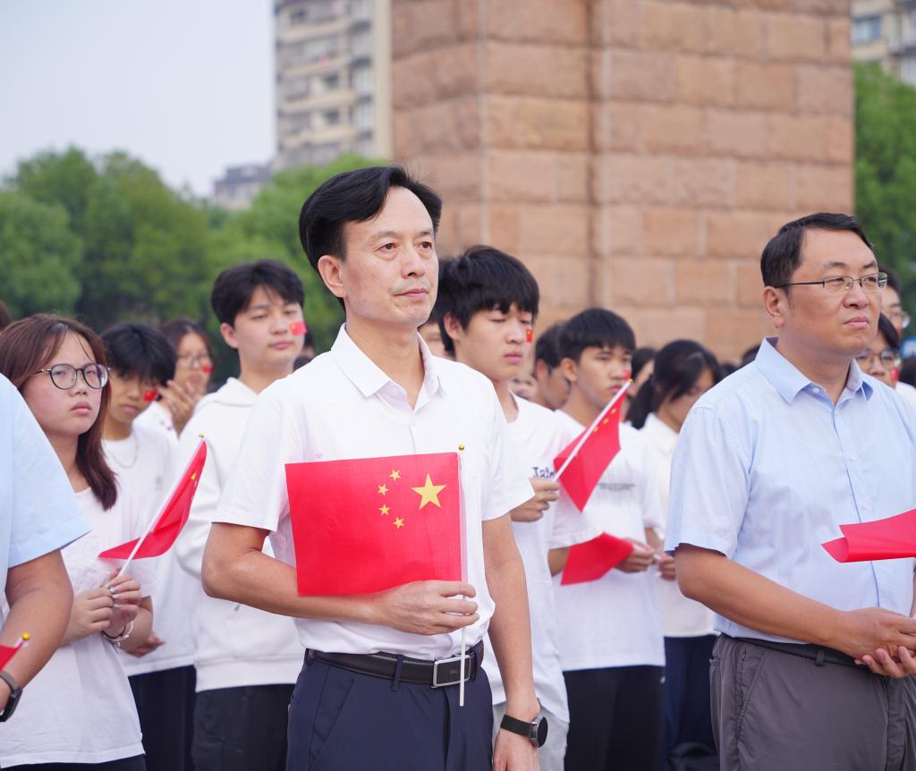 为庆祝中华人民共和国成立76周年,引导全校师生厚植爱国主义情怀,弘扬新时代民族精神,10月1日清晨,九江学院在西门广场举行主题为“我和祖国共成长” 的向国旗敬礼升国旗仪式。学校相关职能部门负责人,各二级学院党委副书记、团委书记,退役复学学生代表等师生代表共600余人参加仪式。校党委委员、副校长吴维勇出席活动并讲话。