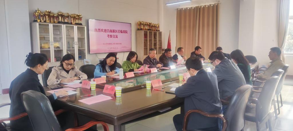 鲁卫东向昌南新区一行介绍了九江学院的情况并致欢迎辞。张英介绍了昌南新区的发展定位并提出双方校地战略合作框架。