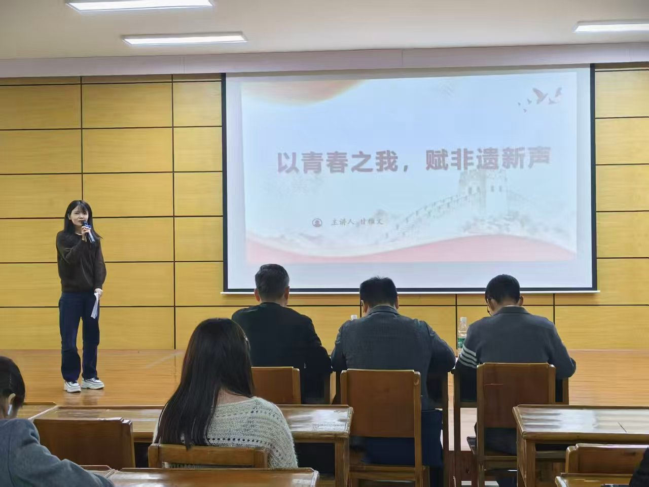 近日,校团委在大礼堂举办主题为“传承先辈精神,争做青春榜样”九江学院青春思享会。五四运动学生领袖、九三学社创始人许德珩长孙许正林受邀担任主讲人,与千余名青年学子共忆先辈革命历程、共悟爱国初心,在回望峥嵘岁月中凝聚践行全会精神的青春担当。许正林以家族视角与详实史料,生动还原了祖父许德珩跨越百年的革命历程,让其奋斗轨迹与全会“坚定历史自信、传承红色基因”精神形成深刻共鸣。他结合自身红色宣讲经历,勉励青年学子多汲取有益思想,用党的创新理论武装头脑,勤锻炼强健体魄,以昂扬姿态担当时代使命,号召大家在新时代自觉传承先辈“矢志报国、初心不改”的精神,将个人成长融入“十五五”时期国家发展大局。